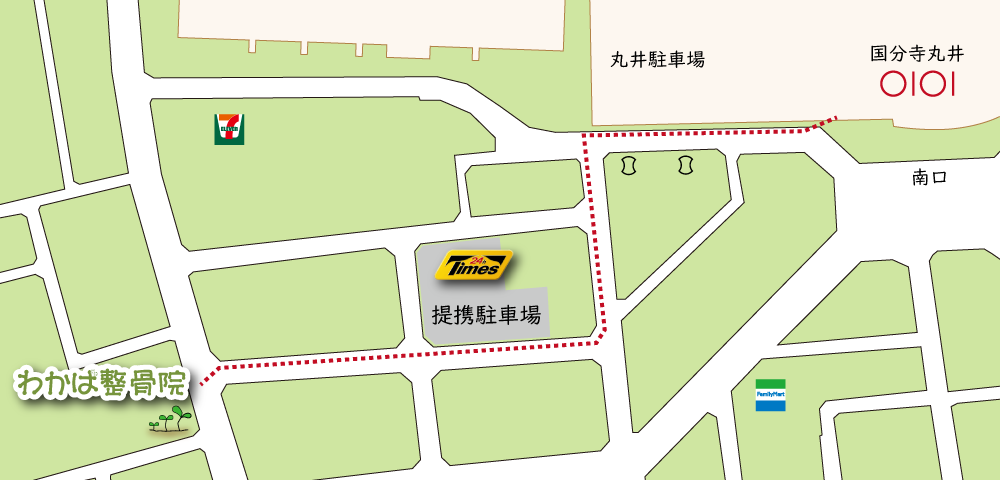 わかば整骨院は、院前に1台、他に近隣の「タイムズ国分寺駅南口ステーションと提携しております。